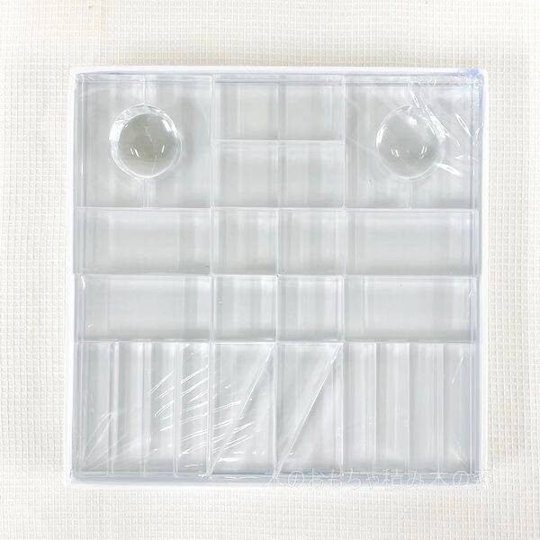 丸、三角、アーチ型など6種類の形とクリア色のボード(板状パーツ)、