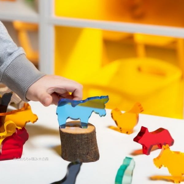 「Luxyブロック」は、上質なアクリル樹脂で作られた、光を通す透き通った積み木です。