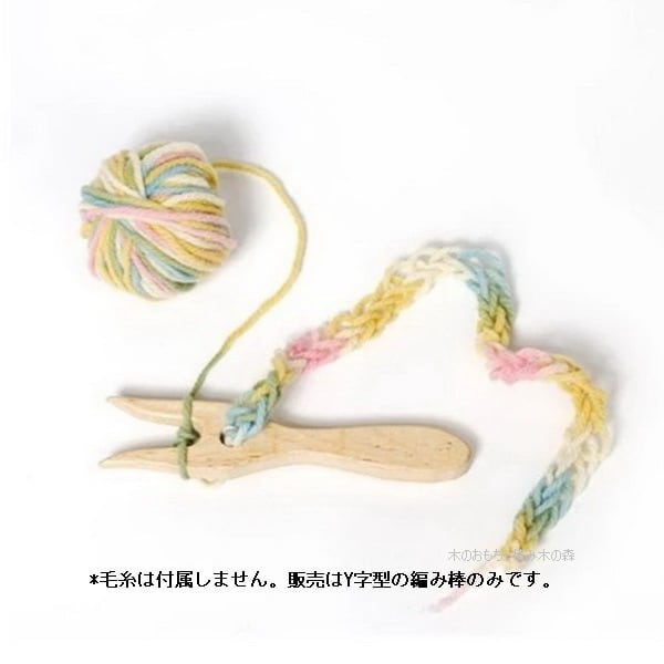 ドイツ製のY字型リリアンです。針を使わずにY字型の木製編み棒で編みます。針を使う普通のリリアンよりも少ない動作で1段が編めます。お子さんの初めての手仕事遊びに最適です。ひと編みごとにものづくりの楽しさを感じることができ、指先の器用さを高められます。