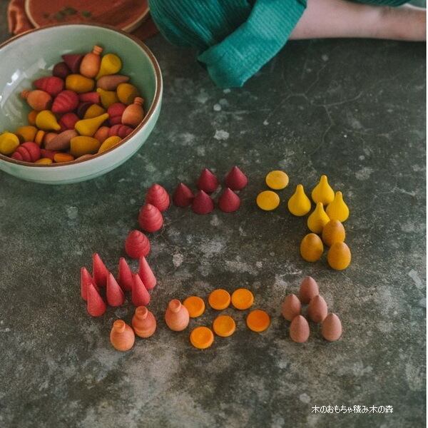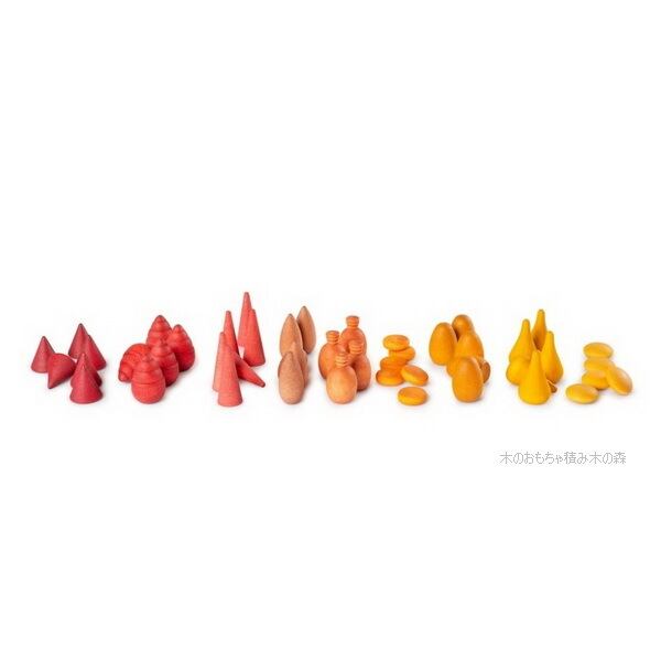 「まんだら ワーム」は、暖色系のまんだらのセットです。いろいろな形が入っています。形ごとに色が違い、9種類9色、81ピース入りになっています。ワーム=warm(暖かいという意味の英単語)です。