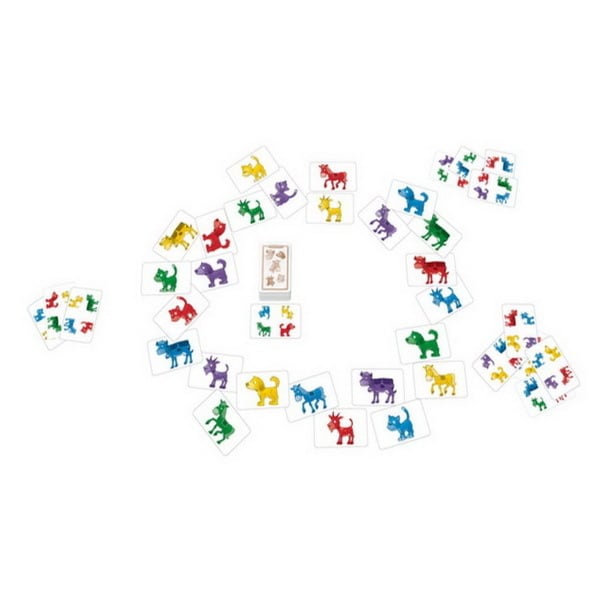 場に広げた動物カードの中から、課題カードに描かれていない色の動物を探しあてるゲームです。別名、「動物のかくれんぼ」。動物と色をすばやく見分けて探すので、形や色の認識力のほか、集中力が養われます。