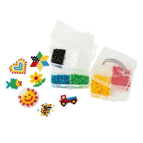 こちらは、6色、6000ピースのビーズ、透明のボードが3枚、アイロンペーパーがついているので、すぐにアイロンビーズ遊びが楽しめます。3段仕立てのプラスティックボックス入り。はじめてのアイロンビーズ遊びにおすすめです。